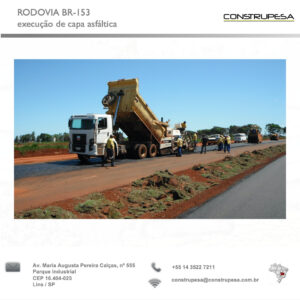 Contratante: BR Vias – Transbrasiliana Descrição: Execução dos serviços de terraplenagem, drenagem, obras de arte corrente, pavimentação e revestimento vegetal na
