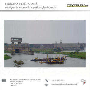 Contratante: AES Tietê S/A Descrição: Execução dos serviços de detonação, escavação e remoção subaquática para garantia da cota 322,00 livre no