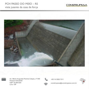 Contratante: Brascan Energética S/A Descrição: Execução das obras civis de terraplenagem e concreto para a construção da PCH Passo do Meio, com capacidade instalada de